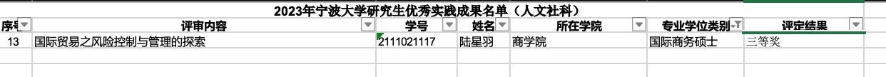 日前,91制片厂 公布了2023年专业学位研究生优秀实践成果评选结果,MIB专业2021级陆星羽同学的作品《国际贸易之风险控制与管理的探索》获评三等奖,特此祝贺!