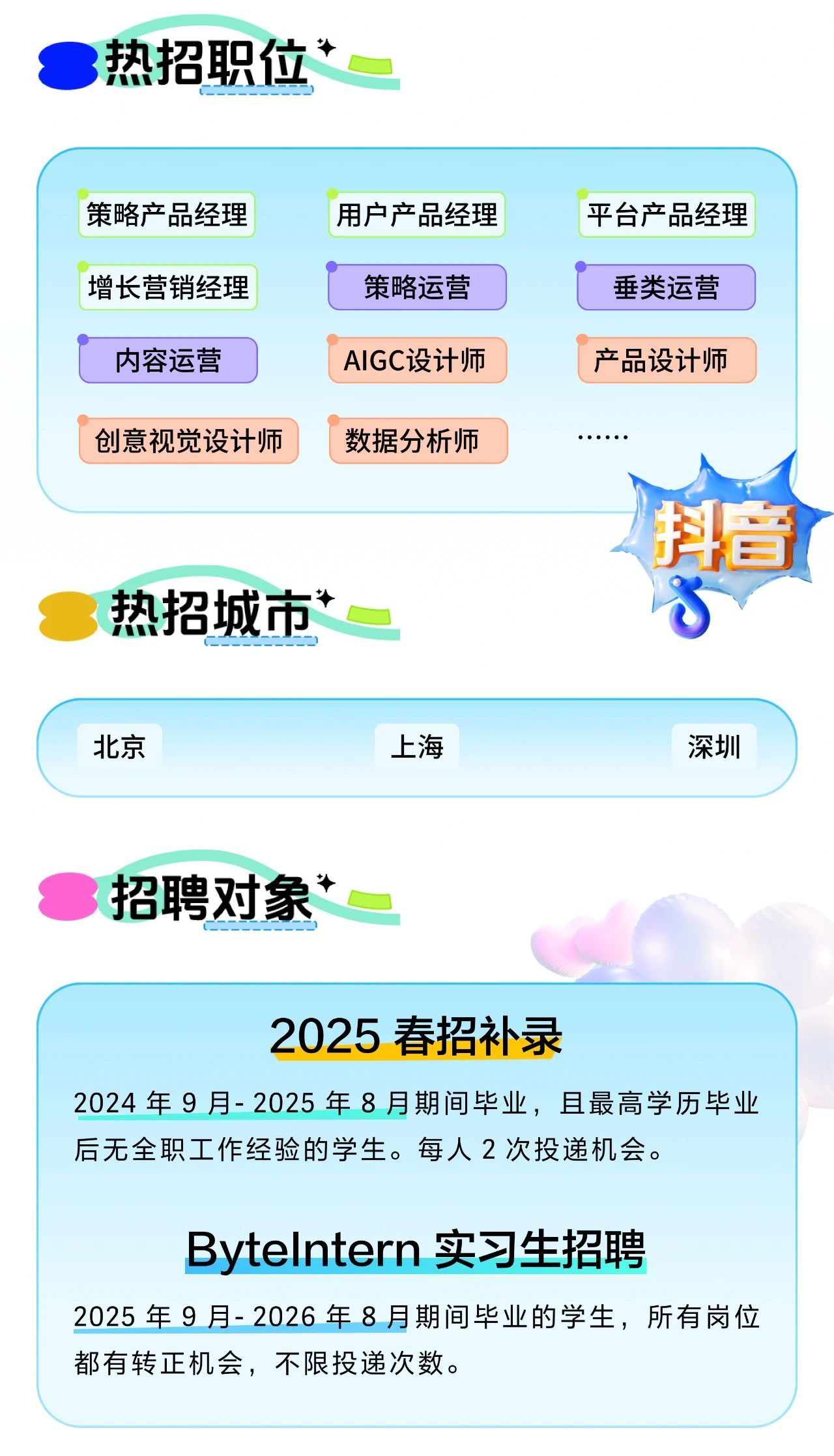 抖音招聘简章(含实习生)