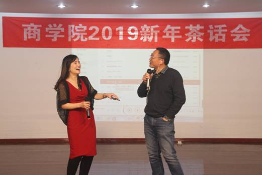 工商系的两位老师带来的《新闻联播》幽默十足,忍俊不禁;经济系的《大王让我来巡山》载歌载舞,更是点燃了现场的气氛;国贸系的合唱《朋友》“一句话,一辈子,一生情,一杯酒”道尽生活中友情的珍贵。互动环节盛沛锋副院长和陈涛副院长带来了有趣的兔子帽表演。