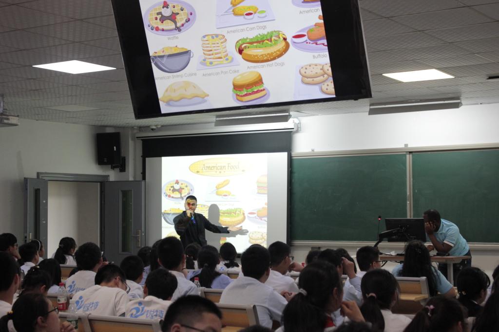 课堂上,来自俄罗斯、印尼、刚果等五个国家的留学生通过演讲、唱歌、跳舞等形式给中学生们展示了丰富多彩的异域文化。此外,通过跟读、朗诵、问答等方式教授了纯正的英语。高桥中学带队老师表示,通过留学生们的生动讲述,开阔了同学们的眼界,增强了学习英语的兴趣,这种课堂形式很受同学们的欢迎。