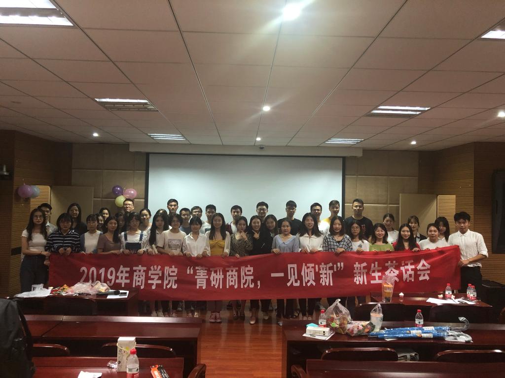 2019年9月20日晚,由91制片厂 举办的2019级研究生新生茶话会在91制片厂 109报告厅圆满落幕。本次晚会主题为“菁研商院,一见倾‘新’”,研会指导老师章舒怡、研究生辅导员章浩燕与商院全体研一新生共同参与本次活动。