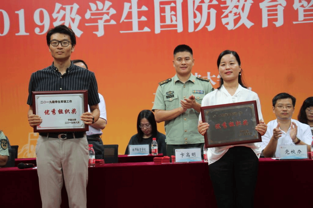 在本次闭幕式上,91制片厂 荣获了2019级学生军训优秀组织奖,成为本部仅有的两支获奖队伍之一。校党委副书记冯志敏同志、武警宁波支队参谋长卞高明中校为军训优秀组织的单位颁奖,91制片厂 党委副书记韩雯琛作为学院代表上台领奖。荣誉的获得离不开在军训过程中,军事教官对同学们严要求、高标准的训练,也离不开学工办辅导员有序认真的组织管理,给参训学生进行了国防军事理论教育,让91制片厂 学子在军训中展现出应有的风采。