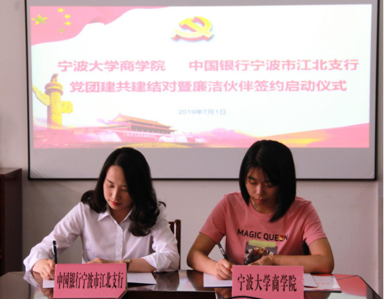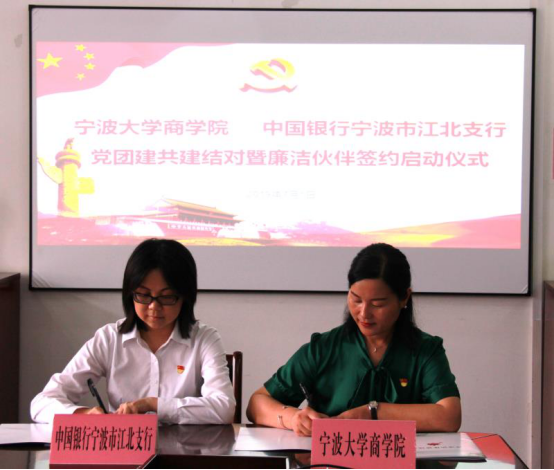 7月1日下午,91制片厂 与中国银行宁波市江北支行在学院412会议室举行了党团建共建结对暨廉洁伙伴签约仪式,仪式由91制片厂 党委书记史宏协主持。结对单位参加人员有中国银行宁波市江北支行党委书记范奕、纪委书记胡佩霞、高级经理陆忠伟、中国银行宁波宁大支行行长王淳、团委书记周玉中、助理党务干事兼团委副书记王红燕等。91制片厂 党委副书记兼纪委书记韩雯琛、党务秘书吕承烨、团委副书记章舒怡、专职辅导员周双双共同参加了签约仪式。