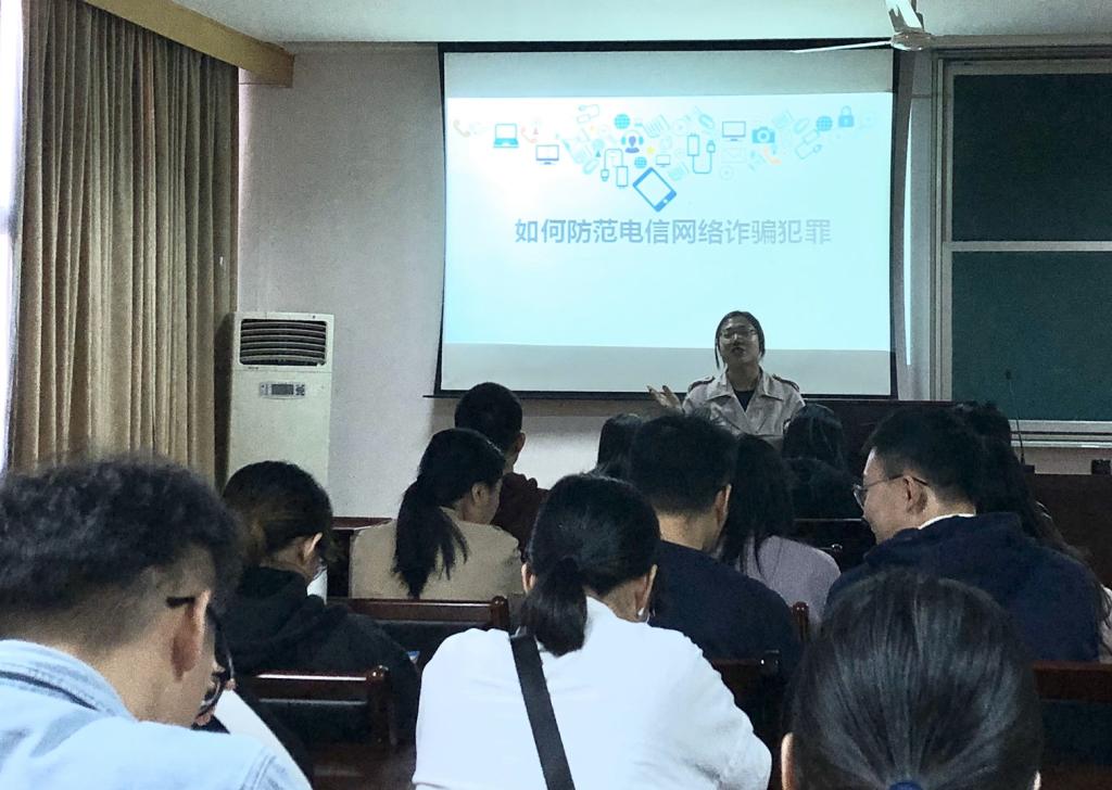 此次宣讲会讲解了电信诈骗的类型、特点和常见形式,又从实际出发,根据真实案例具体介绍网络兼职、贷款诈骗、冒充老师诈骗、网络购物诈骗、冒充熟人诈骗等高校常见的电信网络诈骗手段和防范要点,最后也对到场学生提出了预防和补救双管齐下的建议并给出了相应解决办法。