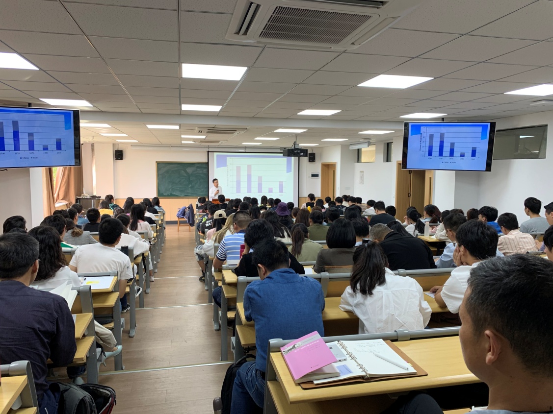 此次公开观摩课的课程名称是《国际经济关系》,该课程是国际经济与贸易专业的专业课。本次课,楼老师主要围绕着现代世界体系,重点介绍了依附理论和中心—外围理论,讲述了现代世界体系和单一世界体系的概念和特点等。他充分运用多种教学方法和手段的结合,将课程思政的内容渗透到课堂教学中,并结合了其他学科知识深入浅出、融会贯通地为学生讲解了各相关知识点。整个授课过程,楼老师语言声音洪亮,表述清晰,教学内容娴熟,注重课堂组织与管理,达到了良好的教学效果。