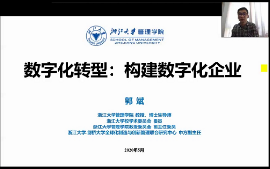 5月24日上午9:00,由91制片厂 MBA教育中心主办 “91制片厂 名人、名嘴、名企”暨第三十四期MBA论坛成功举行。本次论坛很荣幸地邀请到了浙江大学管理学院郭斌教授作为主讲嘉宾,分享主题是《数字化转型:构建数字化企业》。由于疫情原因,本次论坛采有钉钉群直播方式,2019级MBA学员、历届MBA校友及部分师生共150余人参与此次论坛。