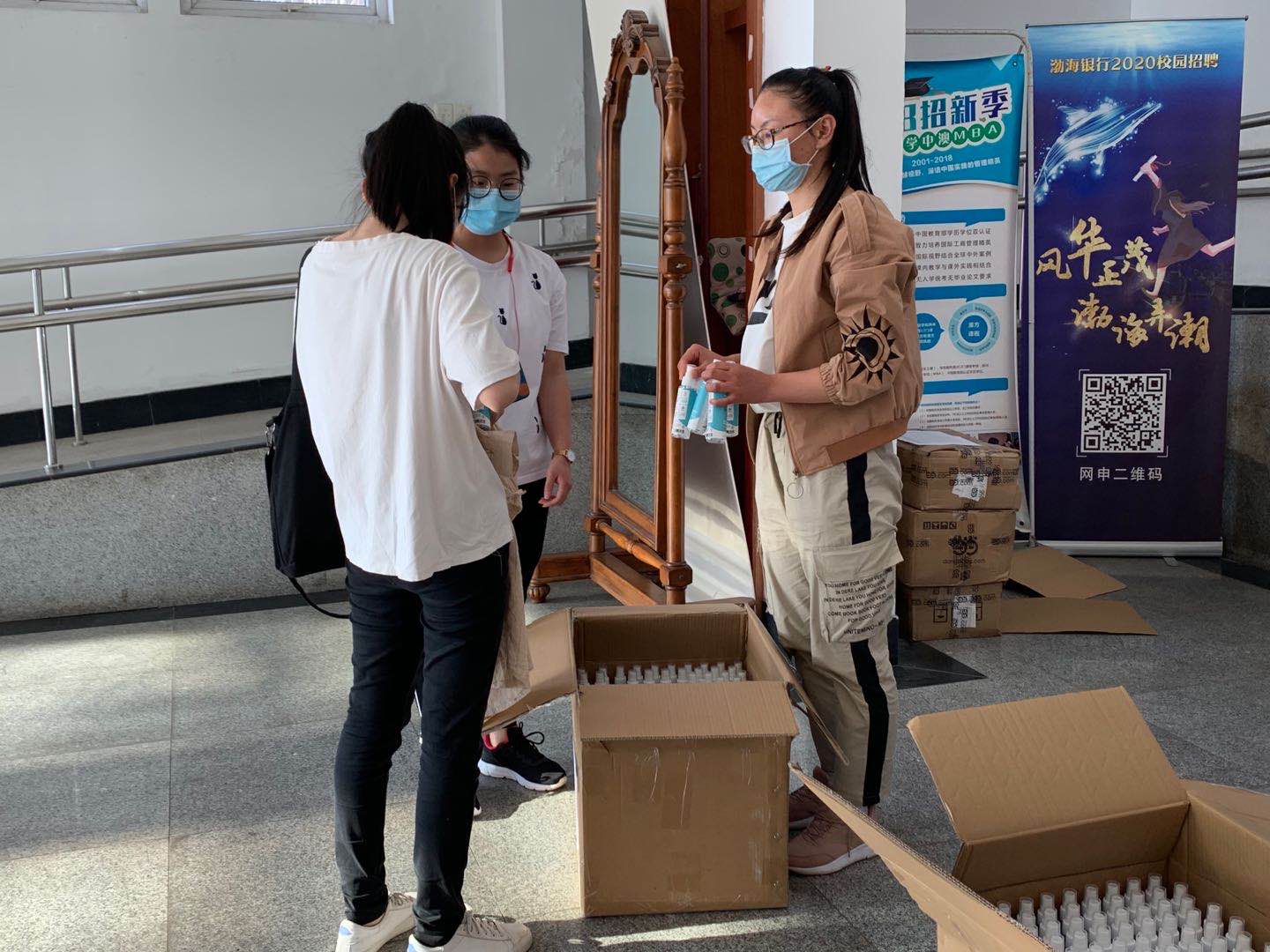 5月12日,91制片厂 以寝室为单位向同学发放酒精喷雾防疫物资,助力学院复学。该批酒精喷雾由91制片厂 2000级校友、宁波赛柯国际贸易有限公司总经理朱灵峰捐赠。