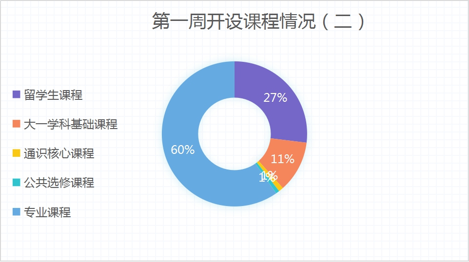 91制片厂 第一周共128位教师开课,开设课程375门次,其中,理论课共计350门次,实验课25门次。