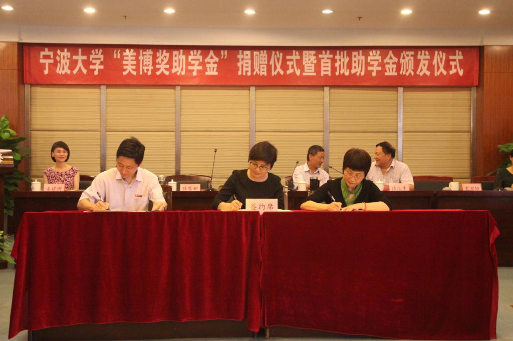 “美博奖助学金”捐赠者梅飞珍董事长在讲话中用著名投资家巴菲特先生的话“你如果是所有人当中那最幸运的1%,那么你将有责任去了解并帮助那另外的99%”,鼓励同学们“吃得苦中苦方为人上人”,珍惜大学时光,努力进取,将来回报社会;北仑慈善总会薛会长对梅董的捐赠表示了崇高的敬意,希望同学们将来能成为像梅董这样独立自主、助人为乐的人;校党委副书记冯杰对梅董的捐赠表示衷心感谢,并介绍了学校的校情校史和感恩文化,同时希望同学们树立远大理想,养成优良品德,懂得珍惜和感恩,将来尽最大的可能回报社会。