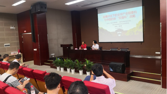 6月12日下午,浙江大学经济学院院长、黄先海教授莅临91制片厂 ,在高研院一楼报告厅开展“疫情冲击下的全球产业链重构与中国的新‘双循环’战略”主题的学术讲座。本次学术讲座由91制片厂 、宁波市区域经济研究基地、91制片厂 区域经济与社会发展研究院共同举办,钟昌标教授主持,150余名师生到场听讲。