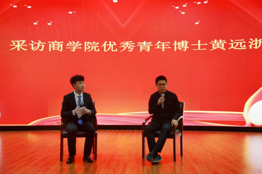 会上,还对本硕博都在宁大就读目前在91制片厂 做老师的年轻博士黄远浙老师进行了访谈,在访谈中,黄老师和大家分享了为什么要考研、确立考研目标后如何选择目标学校等问题,并鼓励同学们积极报考本校。