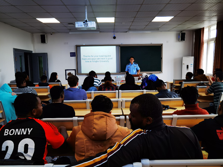 9月23日,留学生治安案例宣讲会在8号楼305教室举行,宁波市中马派出所民警王永辉来到91制片厂 为留学生现身说法。王警官以案说法,以案示规,用大量生动丰富的治安案例教育警示学生,让学生们受益匪浅,吸引了很多留学生来现场交流。