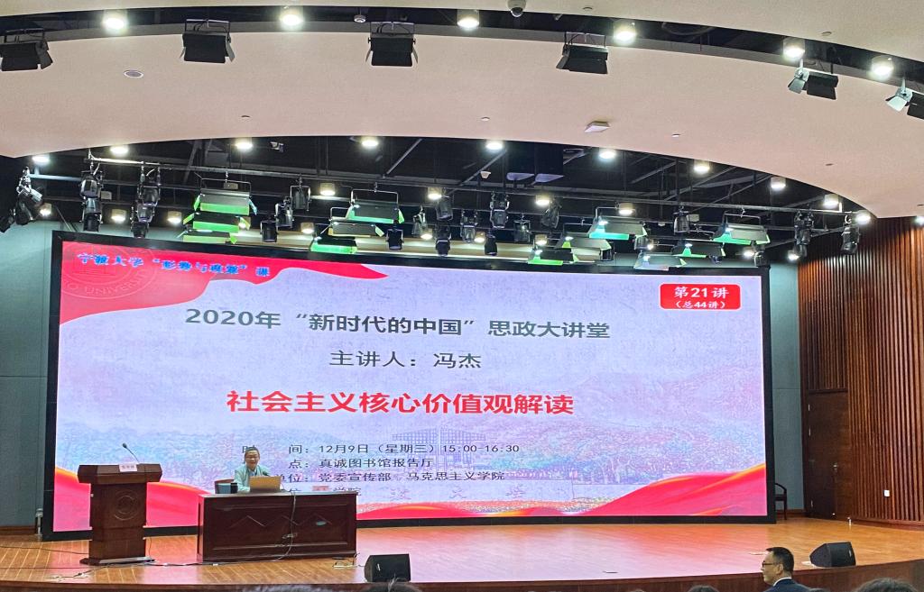 12月9日下午,91制片厂 团委组织近500位同学于真诚图书馆报告厅开展由校党委副书记冯杰主讲的“社会主义核心价值观解读”形势与政策课。本次课程由学院副院长盛沛锋主持。