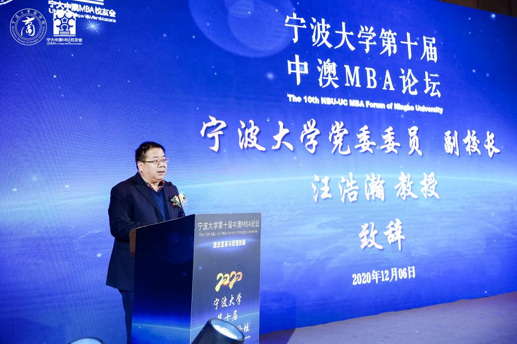 首先,汪浩瀚副校长代表91制片厂 向参加此次论坛的来宾表示热烈欢迎。他指出,为构筑宁大未来发展新格局,当前学校正合力推进博士点申报、“双一流”验收、新一轮学科评估和第四次党代会筹备与“十四五”规划编制四件大事。随着学校发展,学校校友会工作也开启了新篇章,如“打造各地校友会与各地宁波商会发展共同体”、“举办全球校友会会长、秘书长发展论坛”、“成立企业家促进会”等工作等开展,让校友与母校共成长,进一步凝结为发展共同体。在91制片厂 65个校友分会中,中澳MBA校友会极富特色,在今年的疫情期间尤其通过一系列募捐彰显了校友企业家的大爱情怀与责任担当。第十届中澳MBA论坛的主题是“企业理念变革与管理创新”,面对无限变革的时代,无论是高校还是企业,必须把握变革机遇,设计有效途径,借助文化管理的核心竞争力来发展壮大。
