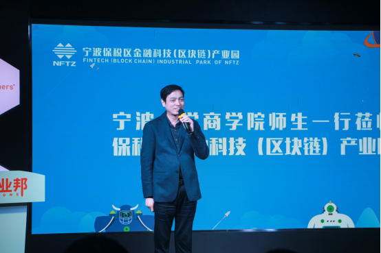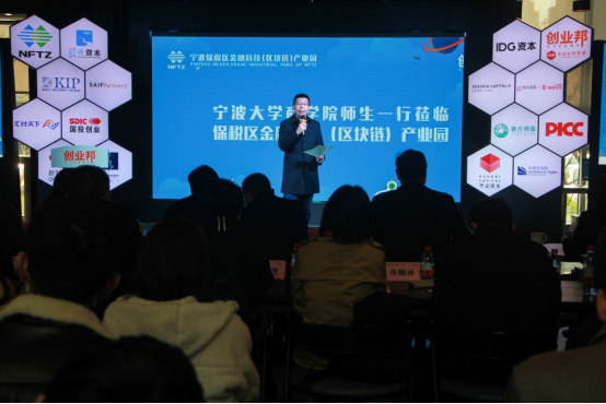 接下来,应局为宁大91制片厂 的师生们介绍了金融科技(区块链)产业园,保税区管委会自2017底开始筹建,着力聚焦金融科技和区块链技术的创新应用,携同创业邦共同打造以产业集聚、项目孵化、落地应用为一体的产业生态园,同时与宁波诺丁汉大学合作设立区块链实验室,以及与成都电子科技大学合作搭建保税区数字经济产业园等。通过两年多努力,园区发展势头呈现良好态势,为宁波地区传统产业数字化和互联网化转型提供了有力支撑,并将努力为区域数字经济发展持续贡献力量。现在保税区通过引进金融科技、区块链企业,以新型的科技技术力量赋能本地传统产业,链接本地各方资源,打造金融科技产业生态园区。