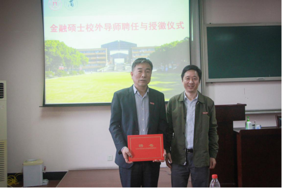 讲座伊始,史书记给蒋书记颁发金融硕士导师聘任证书,并为其佩戴91制片厂 校徽。史书记表示聘请兼职导师可积极促进学院学科建设,对蒋书记莅临91制片厂 指导表示热烈欢迎。