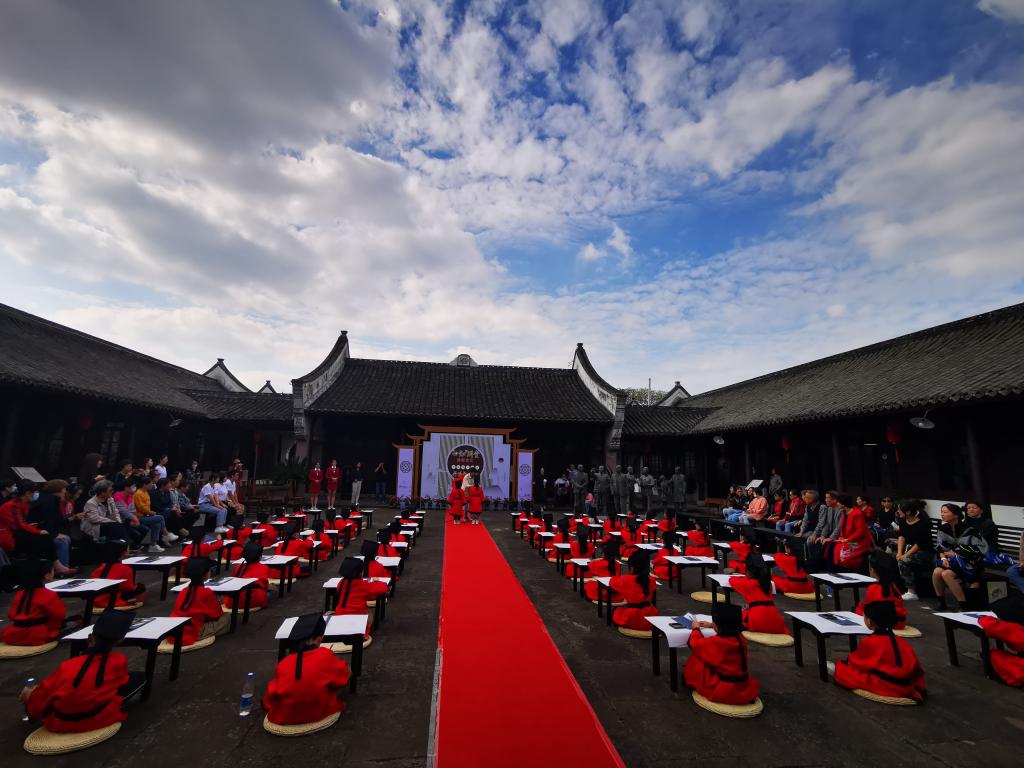 最后,文“话”商帮宣讲团成员,来自本科生第五党支部18经济学班的四名学生,为侨胞眷属代表、镇海实验小学学生等百余人讲说“四知”讲堂第一课,围绕江南第一学堂,诠释新时代宁波“四知”精神与宁波帮精神。
