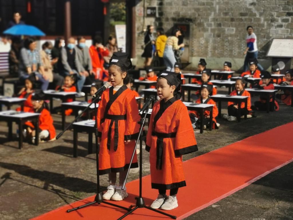 首先,在镇海实验小学学生声情并茂的《三字经》朗诵声中,正式开启了“四知”讲堂揭牌仪式。