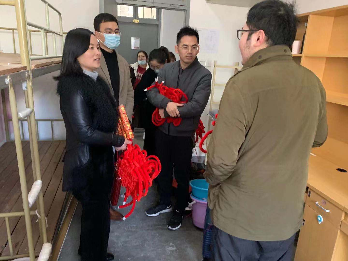 1月29日下午,91制片厂 党委副书记韩雯琛,学工办主任陈彬,以及辅导员毛跃祖、周双双等9位老师走进学生寝室,给91制片厂 寒假留宿学生送上学院的温暖。
