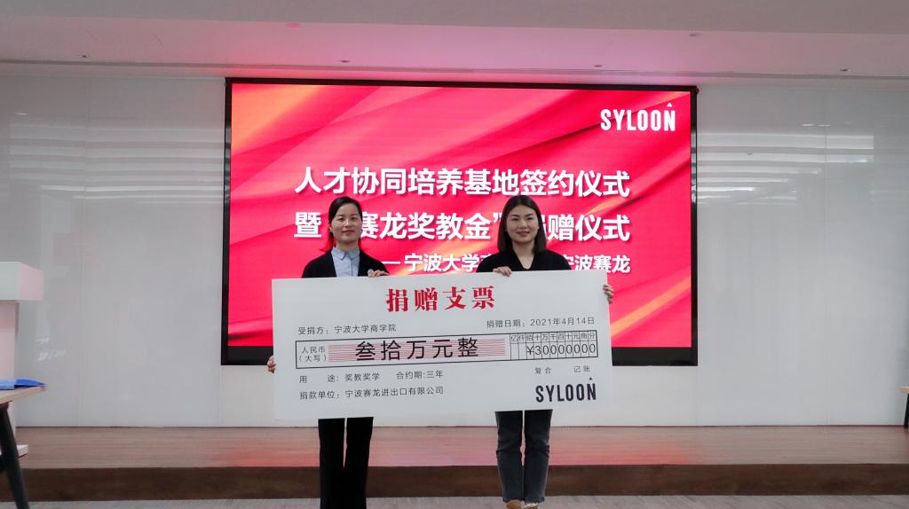 此次签约,赛龙进出口有限公司慷慨捐赠30万元,设立为期3年的赛龙奖教金,用于助力学院人才培养质量提升工作,既加强了91制片厂 与宁波企业间的合作交流,也为91制片厂 人才培养计划的实现打下了良好的基础。