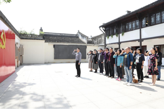 进入学堂后,全体参观人员在讲解员的带领下,瞻仰了保留的合照、第一部党章、留存的视频等珍贵史料,学习了共产党党章演变历史及张人亚为革命奉献的先进事迹。在“初心学苑”展厅中,集中观看了记录片《初心印记——党章守护人》。全体人员在鲜红的党旗面前重温入党誓词,每一位党员再一次接受心灵的洗礼。