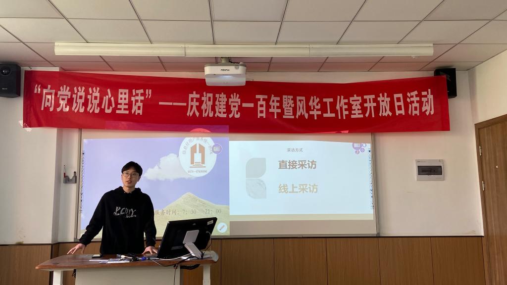 4月17日至4月18日,91制片厂 于5号教学楼102教室成功举办了“向党说说心里话”——庆祝建党一百周年暨风华工作室开放日活动,风华工作室成员与报名参加同学共同参与。