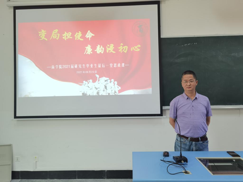 初秋相遇,盛夏离别,6月23日下午91制片厂 于叶耀珍楼202教室举办了“廉韵浸初心,变局担使命”2021届研究生毕业生最后一堂思政课活动,91制片厂 纪委委员朱福建受邀出席,2021届研究生毕业生参与。本次活动由91制片厂 研究生辅导员朱文洁主持。