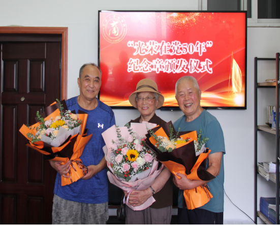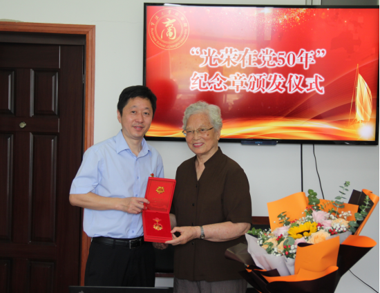 为深化贯彻落实中组部和省委、市委组织部通知精神,高质量做好“光荣在党50年”纪念章颁发工作,切实传递党的关爱,充分发挥纪念章激励作用。91制片厂 高度重视、精心组织,于6月28日在11号楼103会议室为退休老党员解华民老师举办“光荣在党50年”纪念章颁发仪式,仪式由院党委书记史宏协主持,院党委副书记韩雯琛、学院教师代表、离退休教师代表共同参加。