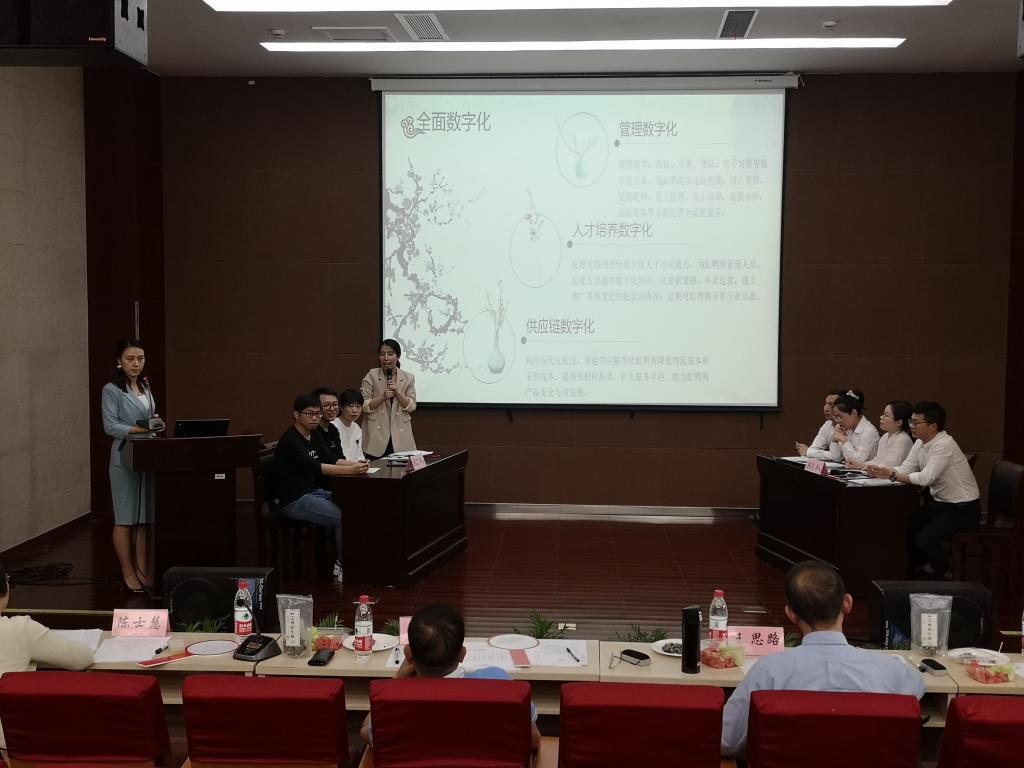本次比赛的案例是由91制片厂 彭新敏教授团队2021年采编撰写的宁波本土企业“一缸一鸭一黄狗:中华老字号如何布局数字化?”;从案例介绍缸鸭狗的行业背景以及品牌的发展历史,上世纪 20 年代,缸鸭狗创立,从开始的有口皆碑,到一度陷入经营困境,其品牌经历了从兴旺到衰落的变化。随着移动互联网的发展,缸鸭狗拓展商场等线下销售渠道的同时,开辟线上渠道,包括入驻天猫、京东等电商平台,打造三店一体的营销模式,扩大品牌影响范围 ,缸鸭狗当下数字化转型的不足,谋划未来,思考缸鸭狗这一百年老字号在数字化时代该如何取得新突破; 8支参赛队伍各抒己见,表明自己的理念和方案,同时台下同学和评委也对各队提出自己的问题和建议,每支队伍沉着应对、巧妙应答,展现了MBA学生的个性和风采。