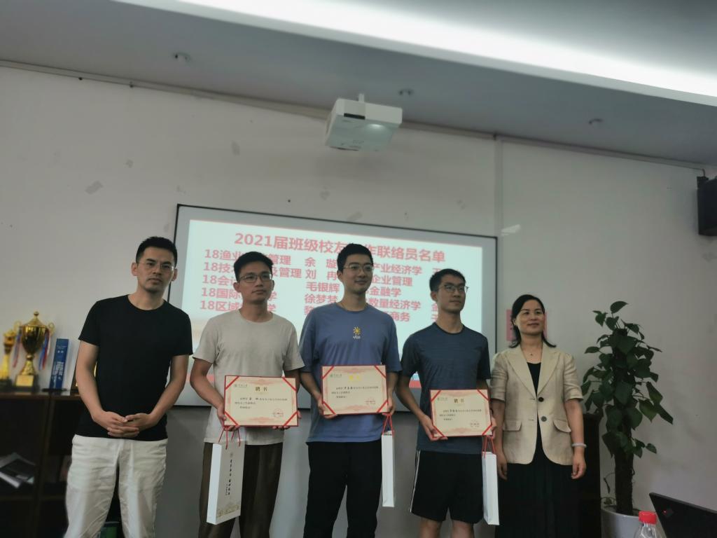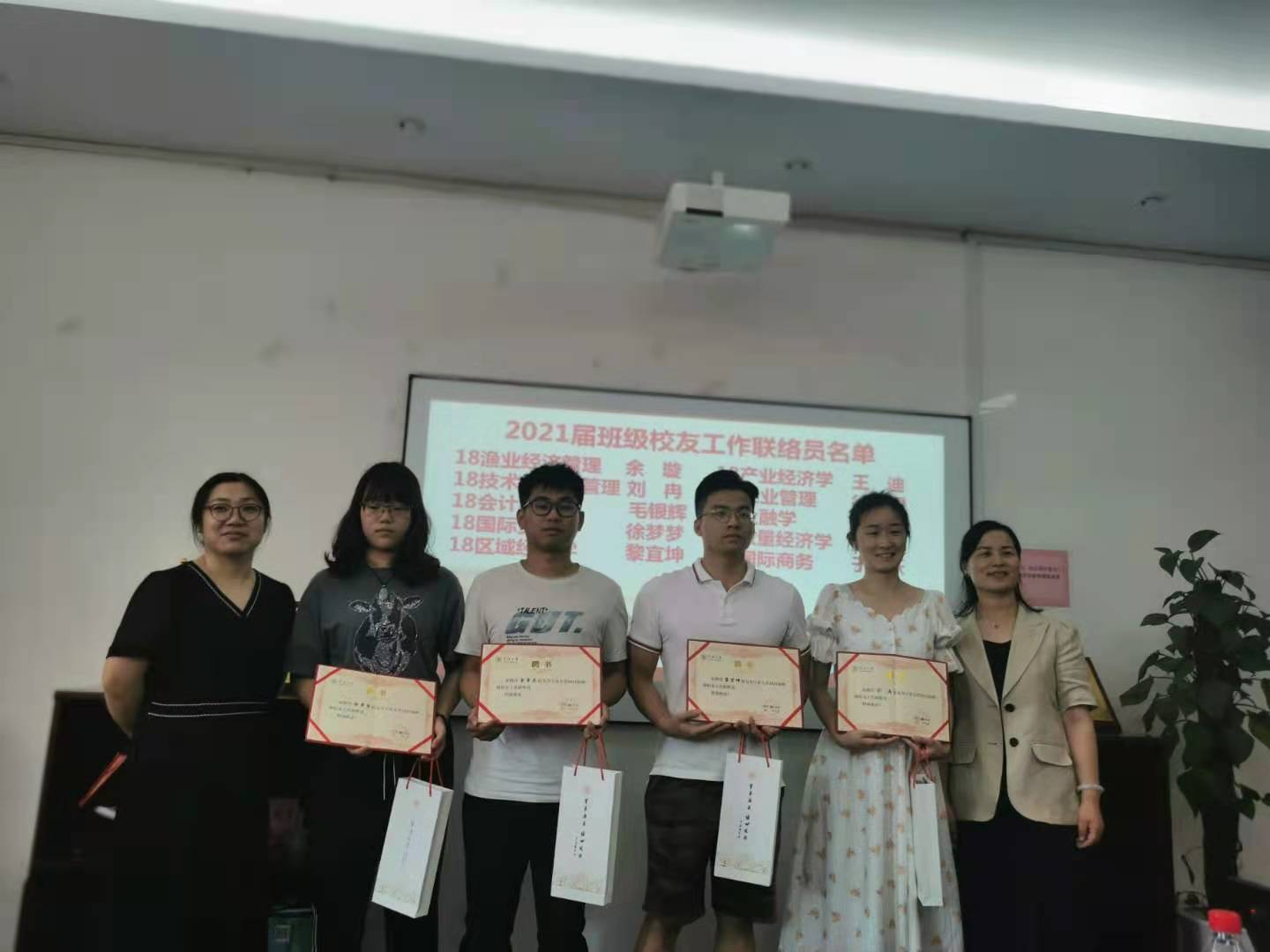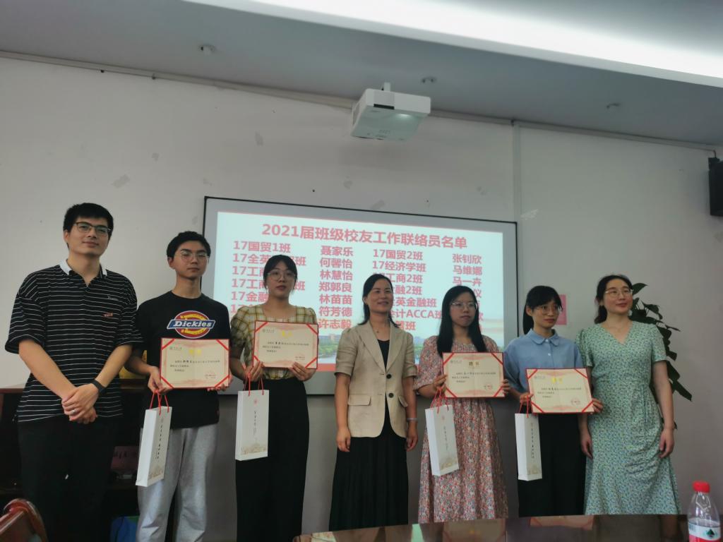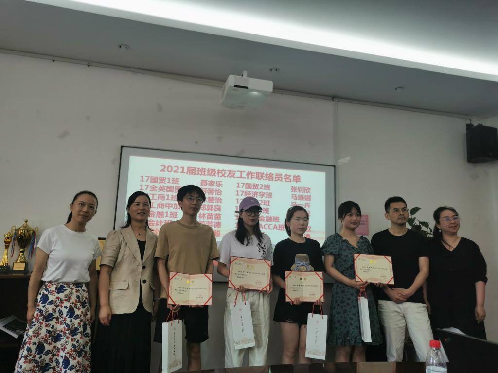会议伊始,陈彬介绍了91制片厂 班级校友工作联络员制度,强调了校友工作和各联络员的重要性。随后,韩雯琛宣读了我院2021届班级校友工作联络员名单,并与辅导员向2021届班级校友工作联络员颁发聘书及纪念礼品。接下来,班级校友工作联络员代表聂家乐上台发言,他感谢了母校以及老师们的培养,表达了对母校的依依不舍之情,同时强调了要发挥校友联络员的桥梁纽带作用,真正践行“一生一世一商人”的格言。