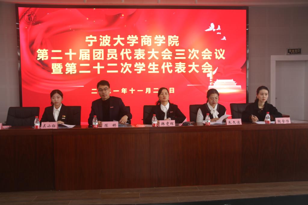 11月20日,91制片厂 第二十届团员代表大会三次会议暨第二十二次学生代表大会在曹光彪商科楼5楼报告厅隆重召开。校学生会主席团成员、91制片厂 党委副书记兼纪委书记韩雯琛、学工办主任兼团委书记陈彬、团委副书记研究生出秘书组长朱文洁、团委副书记陶含怡,以及各兄弟学院的团学代表出席本次大会。来自学院48个代表团共计101名学生代表和66名第二十届团委、学联会委员候选人及各团学组织干部候选人参与本次大会。