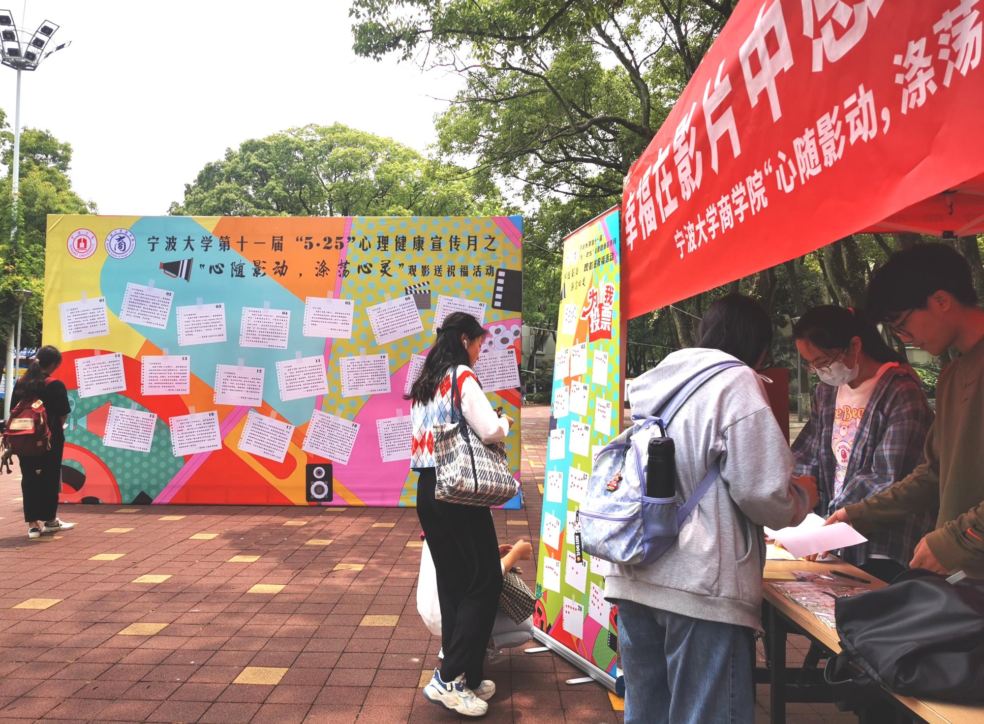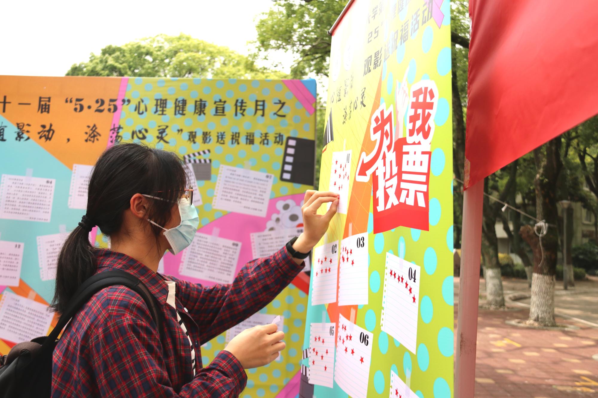 5月25日,为给学生办些实事,对学生进行心理健康教育。91制片厂 在有思广场顺利开展“心随影动,涤荡心灵”大学生心理健康观影祝福语线下投票活动,吸引了近百名同学现场参加。