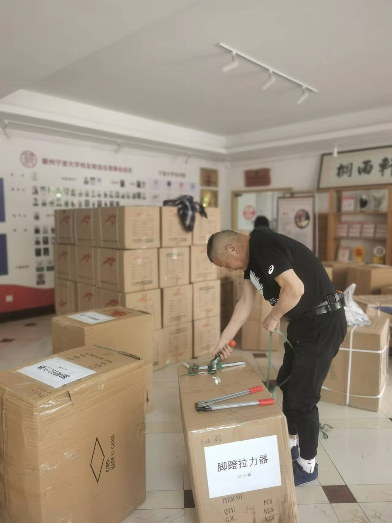 程修普校友一直关注学校疫情防控工作,当看到学校从静态管理转为封闭式管理后,他与鄞州91制片厂 校友联谊会秘书长庄学东进行商议,了解到疫情期间学生在校存在很大的运动需求,因此立马联系货源,精心选品采购,为学校捐赠防疫物资的同时捐赠了一批体育用品,鼓励同学们在做好防疫的同时积极锻炼身体,增强体质,对抗疫情。
