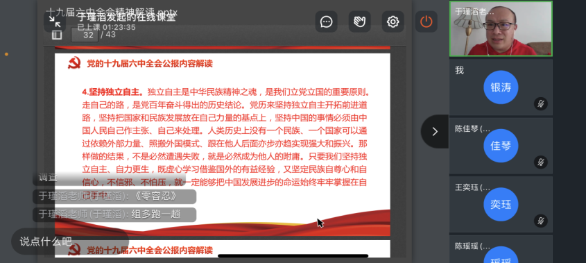 4月20日,91制片厂 党委分党校第46期预备党员培训班于线上举办了主题为《十九届六中全会精神解读》和《共同富裕》的党校课程。本次党课分别邀请会计系教师于瑾滔和经济系教师余璇担任主讲老师,学院第46期预备党员培训班全体学员参加。