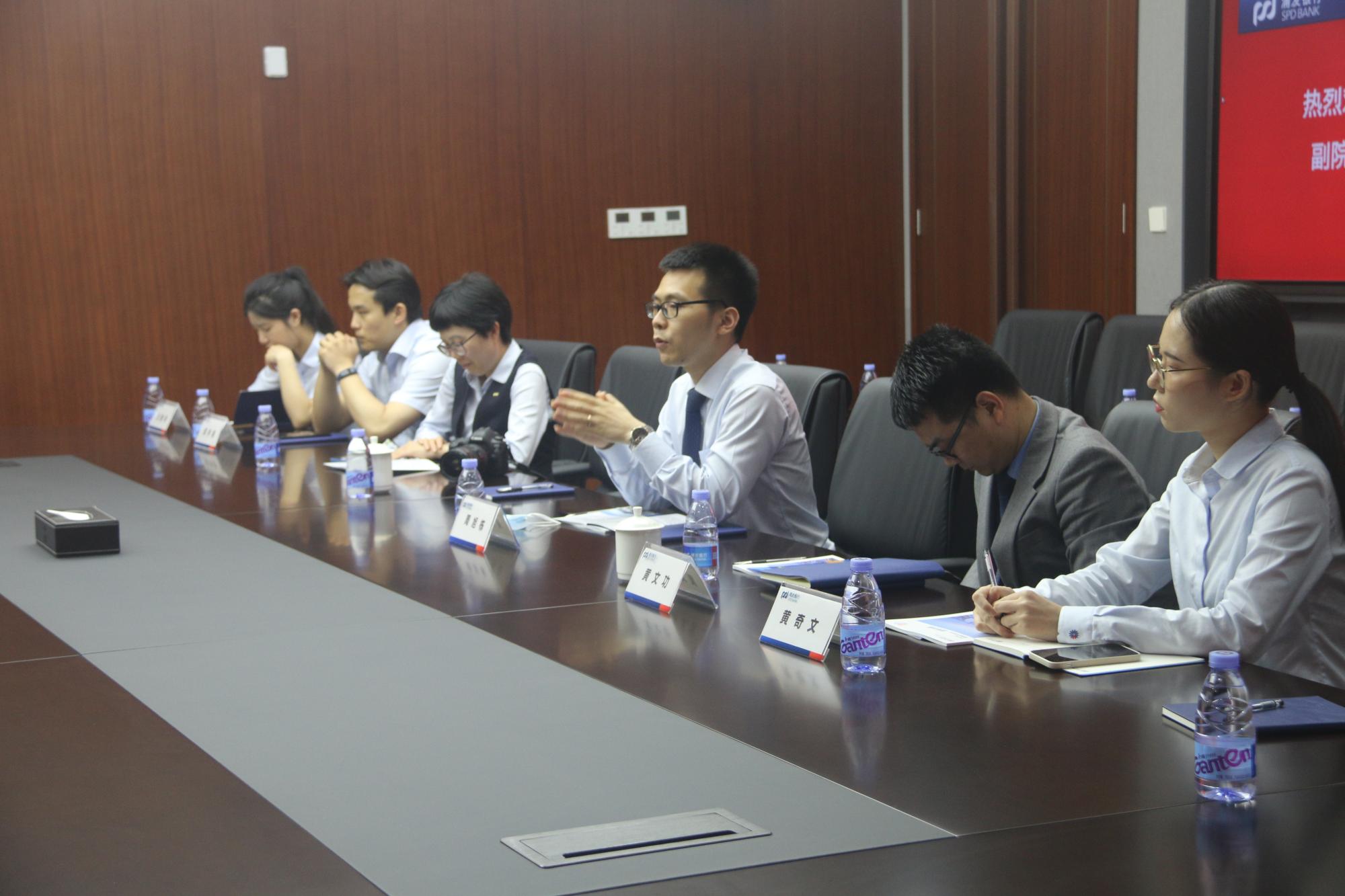 随后,副院长盛沛锋一行又来到浦发银行,浦发银行宁波分行团委书记周旭栋及宁大91制片厂 毕业的5位校友接待了我校来访。到达后,大家首先参观了浦发银行大楼的各个区域,对浦发银行工作环境进行了全面的了解。接着,校企双方进行了座谈交流。