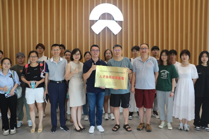 6月27日下午,在熊伟清、张宇萌、胡亮和李贵萍老师的带领下,91制片厂 电子商务社团二十余名学生走访参观了宁波蔚来汽车销售服务有限公司。