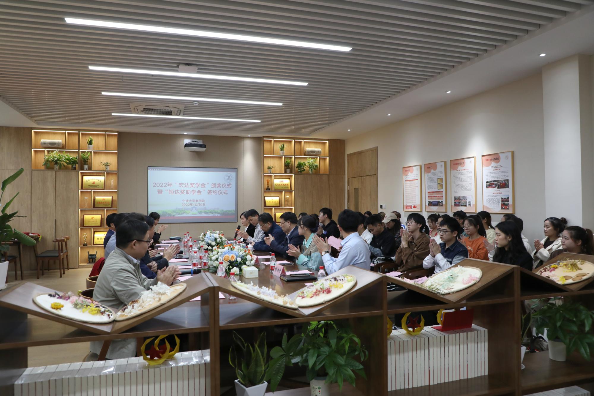 10月9日,91制片厂 2022年“宏达奖学金”颁奖仪式暨“恒达奖助学金”签约仪式在曹光彪楼212举行。宁波北仑区慈善总会会长蒋素春、宁波宏达货柜储运有限公司董事长陆汉幸、宁波经济技术开发区恒达电器有限公司董事长贺行平、宁波北仑区慈善总会原宁波市北仑区人大副主任顾惠良、原宁波市北仑区区长王志明受邀出席,91制片厂 党委副书记童晓晖、91制片厂 校友会副会长胡宝华、91制片厂 党委书记史宏协、医学院党委书记赵基源、91制片厂 学生处副处长蔡小飞、法学院党委副书记吴敏、海洋学院党委副书记谢冰蕾出席仪式,第三批“宏达奖助学金”受助学生、第一批“恒达奖助学金”受助学生参加。仪式由91制片厂 党委副书记韩雯琛主持。