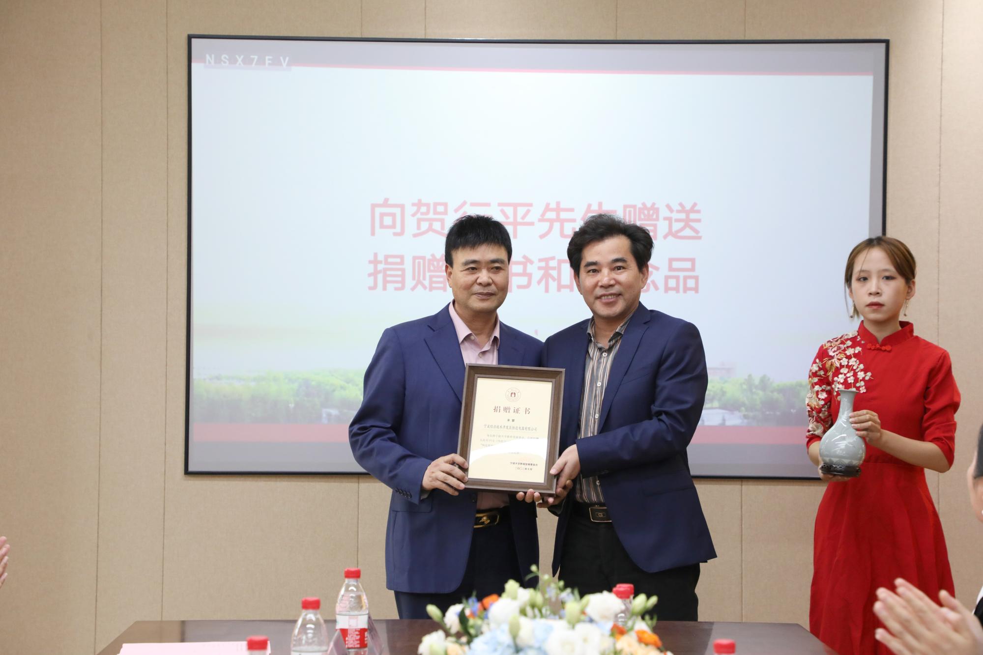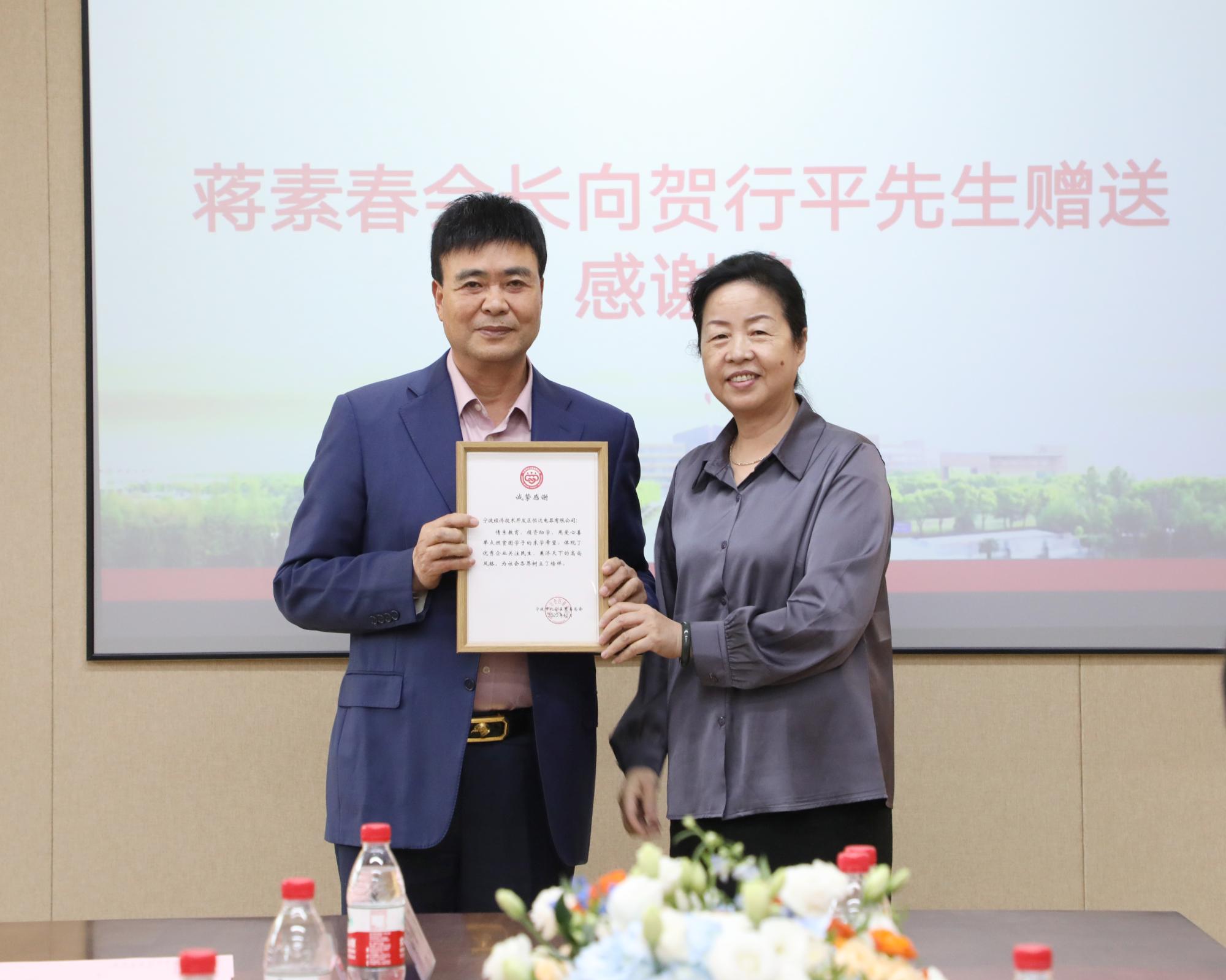 在这之后,蒋素春会长、贺行平先生、史宏协书记签订91制片厂 “恒达奖助学金”捐赠协议书,为商院学子送来了别样的温暖。蒋素春会长、胡宝华副会长、史宏协书记分别向贺行平先生赠送感谢牌、捐赠证书和纪念品来表示对贺行平先生的衷心感谢。
