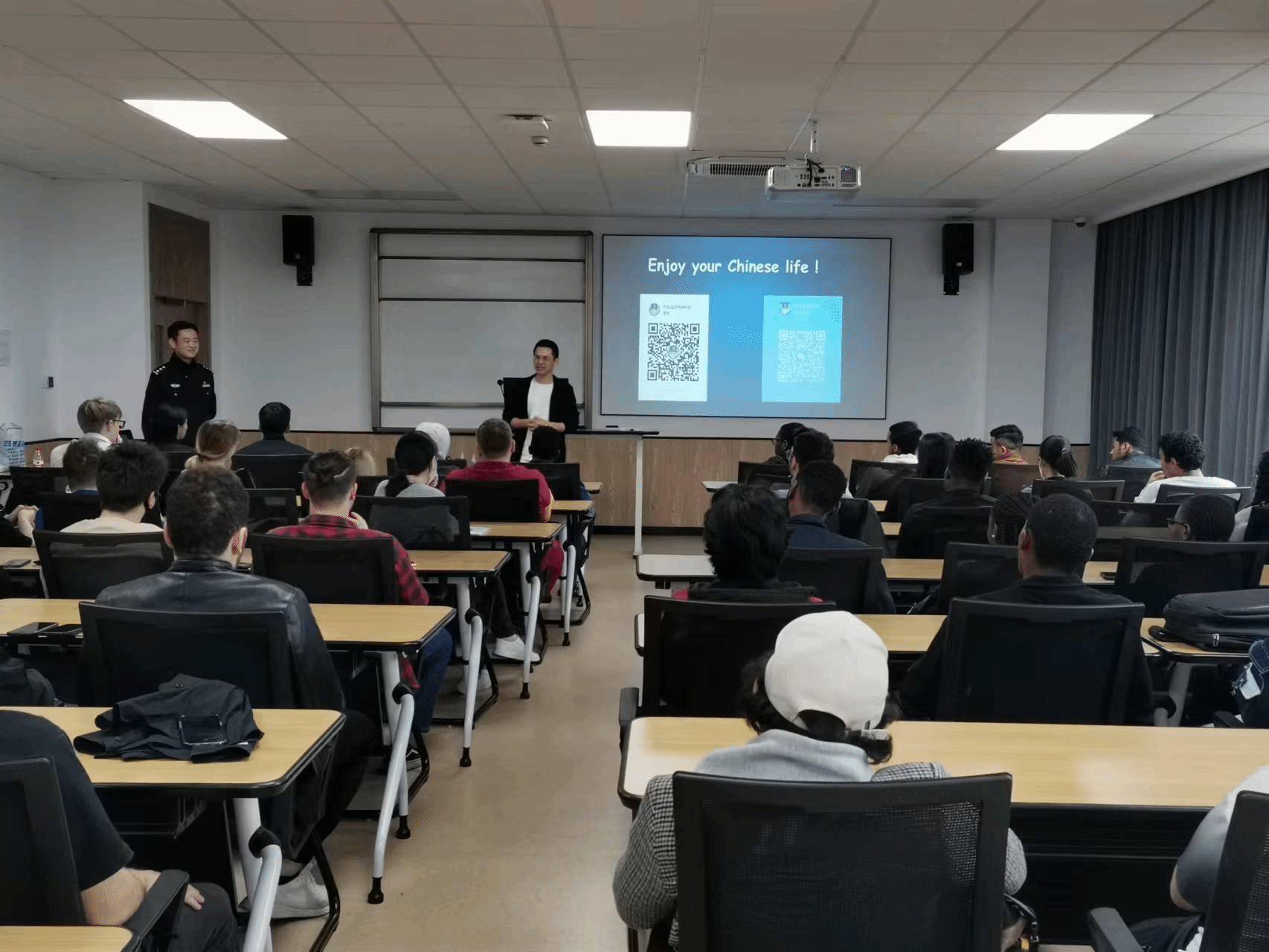 此次治安安全知识讲座为第七届“夯基石、促学风”留学生主题教育系列活动之一,留学生主题教育活动为91制片厂 每学期为留学生举办的专项活动,以专题讲座和专项检查相结合的方式展开,内容涵盖学业指导、规范教育等,旨在帮助留学生更好地适应在华的学习和生活。