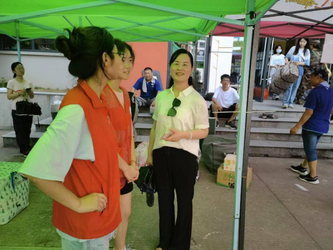 搬迁寝室当天,同学们积极配合学院工作,相互帮助提醒,有序开展搬迁工作。志愿者们与同学们一起搬运物品、清查宿舍,及时解决学生在寝室搬迁过程中遇到的各种问题。由学院学生会成立的志愿者大本营,在志愿点学院提供行李袋,绿豆沙饮品、藿香正气水等,贴心为同学们提供服务,在炎炎夏日送来一份清凉,送来一份贴心。