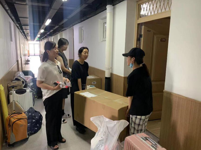 搬迁过程中,91制片厂 党委副书记韩雯琛带领辅导员老师来到宿舍楼中,帮助大家解决搬迁过程中所遇到的问题,并提醒同学们做好个人物品的整理。