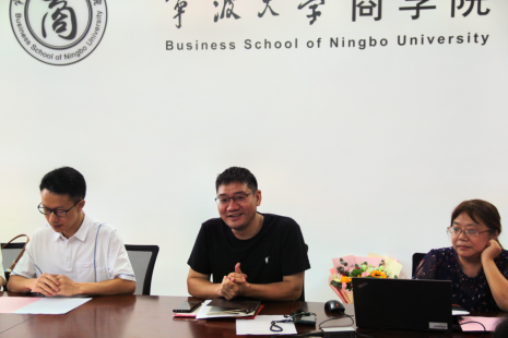 接着,由工商管理系主任彭新敏作为教师代表发言。他谈到自己刚入职时的心路历程,在工作后才发现科研需要理论更需要实践,去服务社会。同时鼓励新教师们要达到教学和科研双提升,需潜心扎根、坚持不懈,不断提升理论素养,拓展与社会接轨的视野,不断创新理论研究思路,形成具备自己个人特色的研究风格。