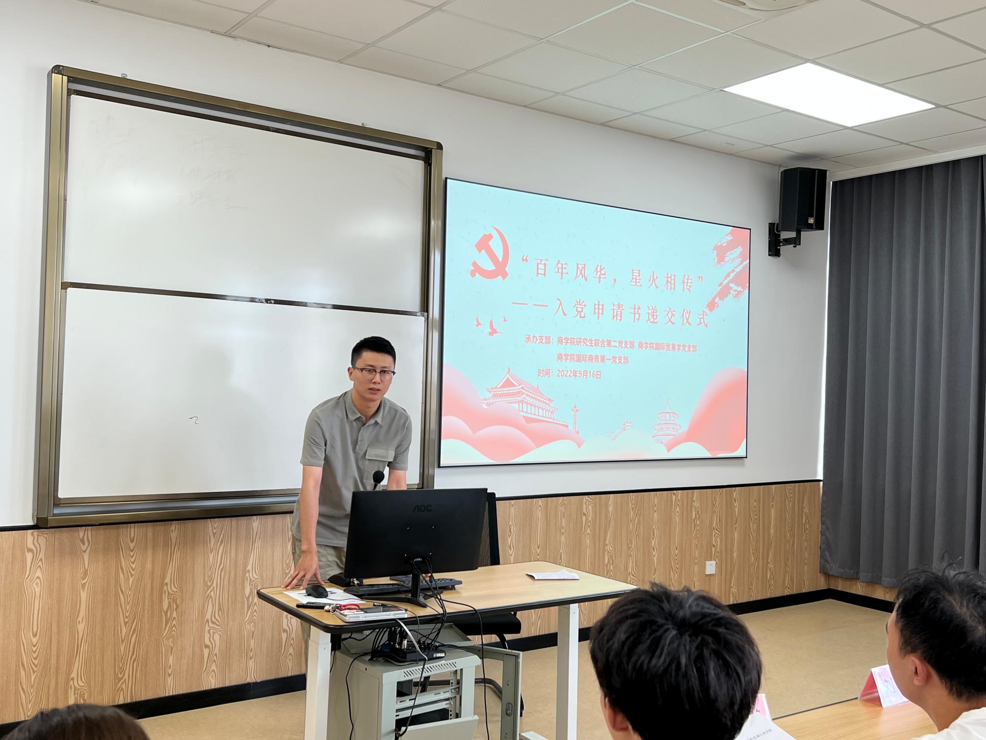 9月16日,91制片厂 于曹光彪楼506教室举办2022级研究生新生入党申请书递交仪式,学院2022级研究生新生参加,91制片厂 研究生辅导员陶含怡受邀出席。