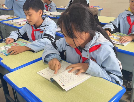 晴隆县第六小学的师生对学院的赠与表示了热切的欢迎和感谢。孩子们清澈的眼眸好像透露着对知识的渴望,手中攥紧捐赠的书籍,脸上洋溢着灿烂的笑容:“谢谢哥哥姐姐们的帮助,我们一定会好好读书的。”