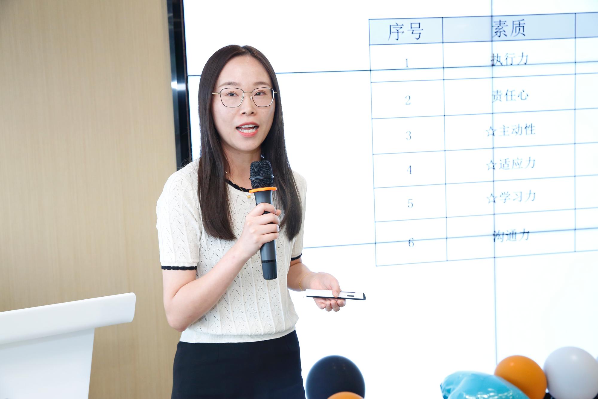 结营仪式的最后,人力资源部招聘经理蒋丽妮为大家讲解了赛尔集团通用素质地图。她首先解释了执行力、责任心和主动性等六个方面,并结合实际的案例,强调了职业素质能力对个人求职、就业和发展的重要性。