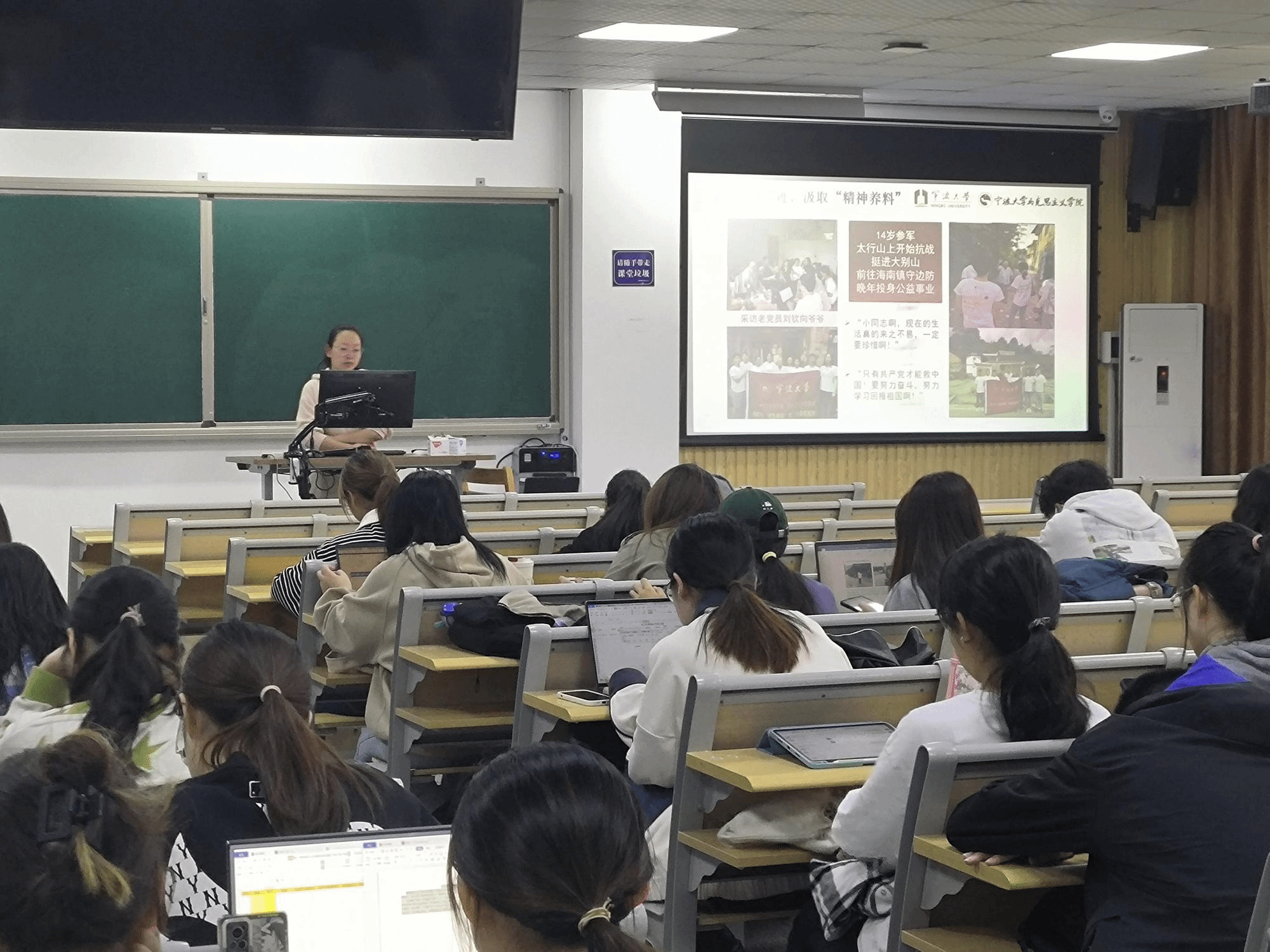 邵露艺分三个部分来讲述“马系”青年的通关修炼手册。首先是“厚植专业优势,涵养源头活水”,建议大家在大学生活中培养个人专业素质,提升竞争力。然后是“追寻红色印记,汲取精神养料”,呼吁大家多多实践,奉献社会,培养自己的精神力量。最后讲了“站好红色讲台,促进生根发芽”,告诉大家要注重精神的传播、传承,才能让红色精神绵延不绝。