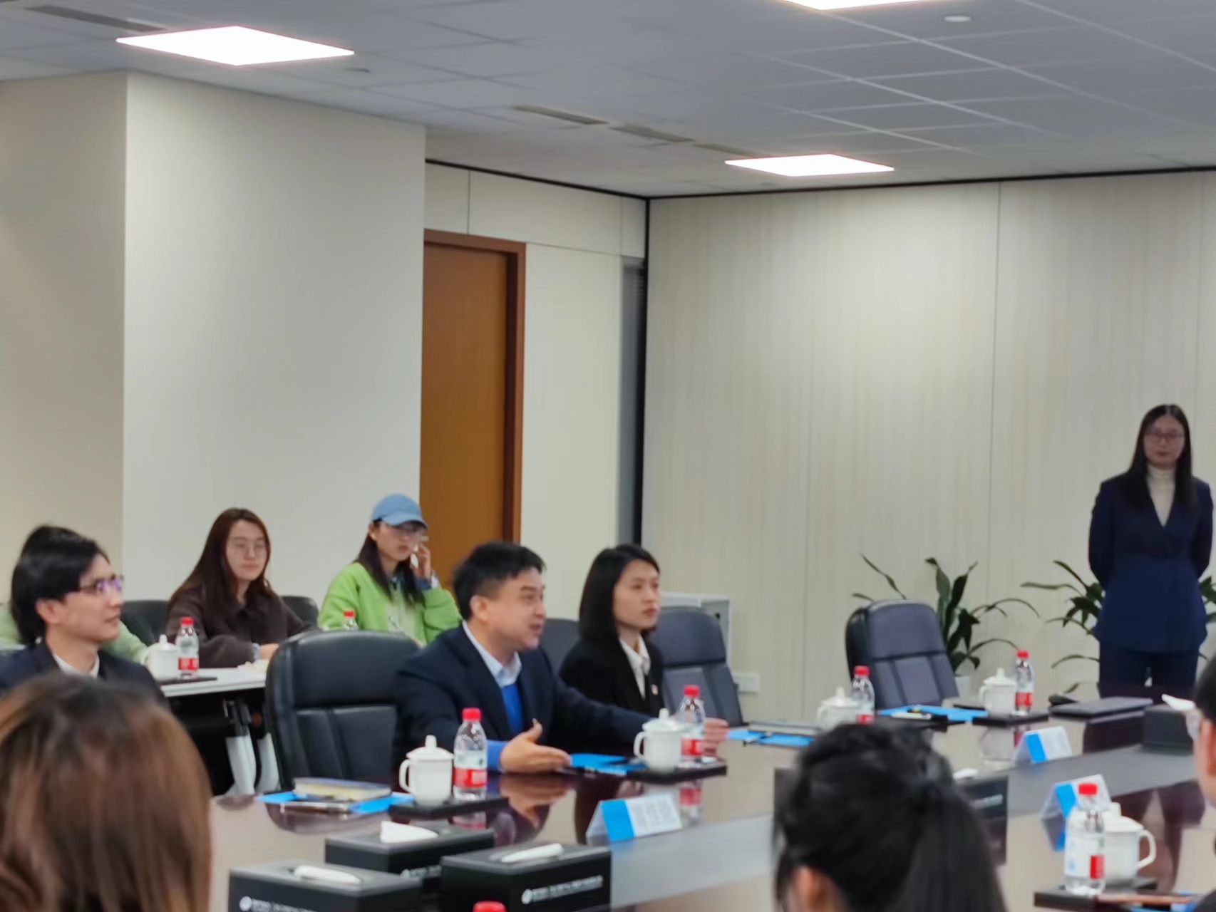参观结束后,双方召开座谈会。座谈会上,部门经理张晨首先从企业现状及优势、战略及组织文化、人才培养、员工的机遇与挑战四个方面进行介绍,并就学生代表的实习情况以及未来规划进行了交流沟通。资金部部门经理助理富佳能以学长的角度,从职业选择作为出发点,分享入职经验,鼓励同学们在校期间积极锻炼多维能力,为就业做好更充分的准备。