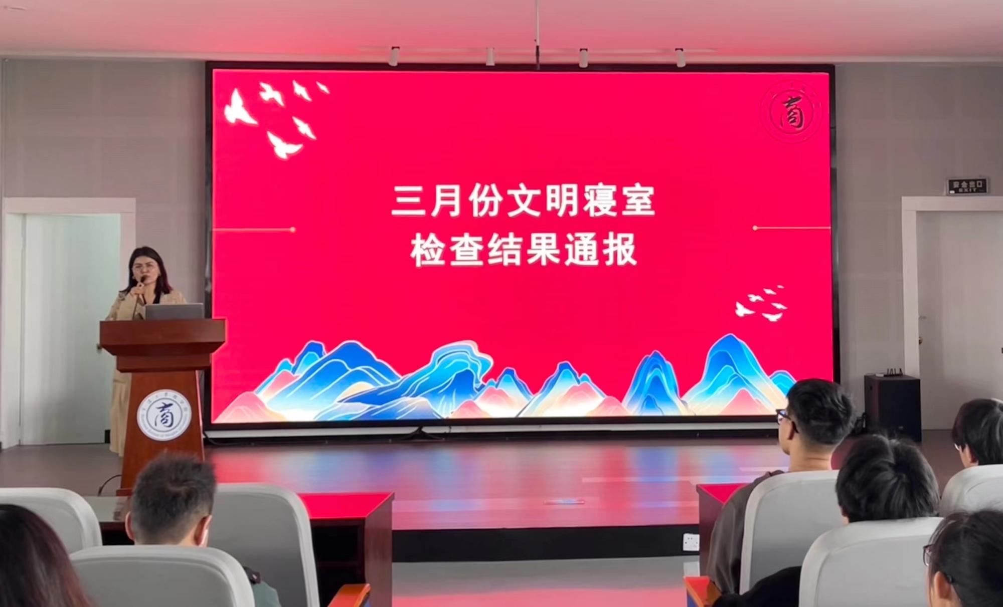 首先,由麦尔阿巴介绍91制片厂 3月份文明寝室检查结果,并对优秀寝室学生的自觉自律和文明就寝行为给予了充分肯定,她鼓励优秀寝室代表以榜样引领更多的同学一起营造文明舒适的寝室环境,她呼吁同学们一定要注意寝室安全,严禁使用违规电器,共同维护安全和谐的寝室环境。