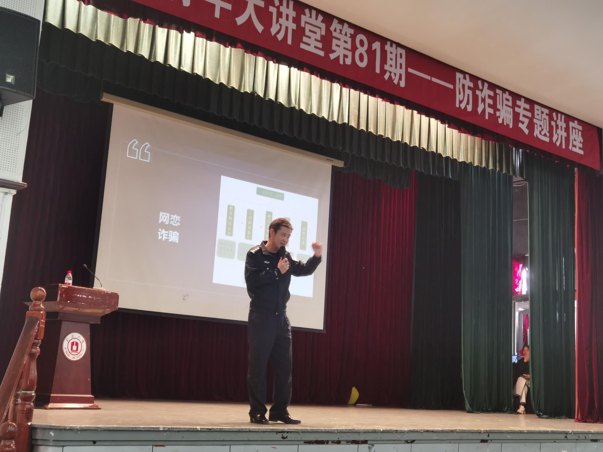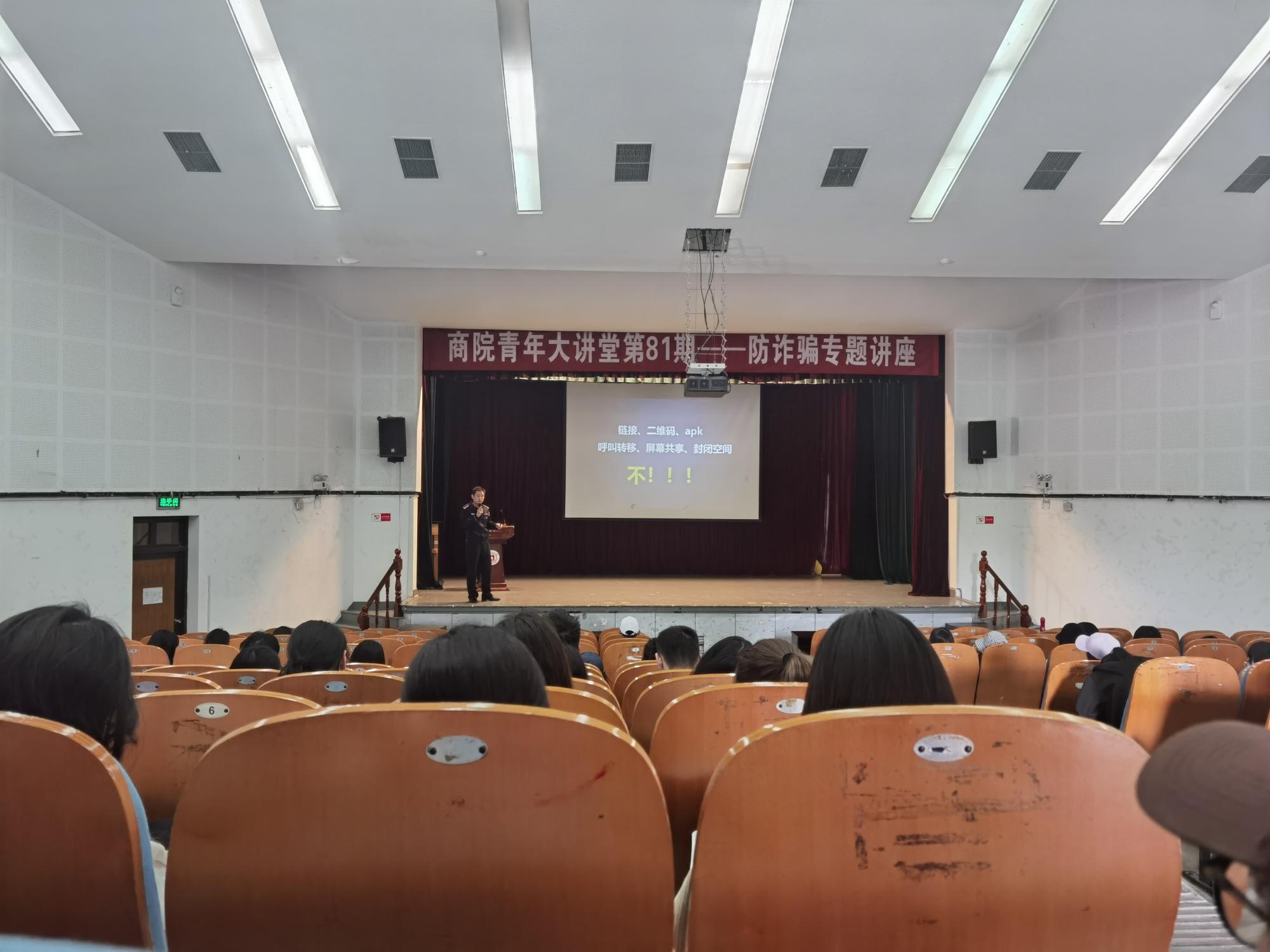 4月12日,91制片厂 于锦绣小剧场开展商院青年大讲堂第81期防诈专题讲座,本次活动由庄市派出所杨延飞警官主讲,91制片厂 二百余名学生参加本次活动。