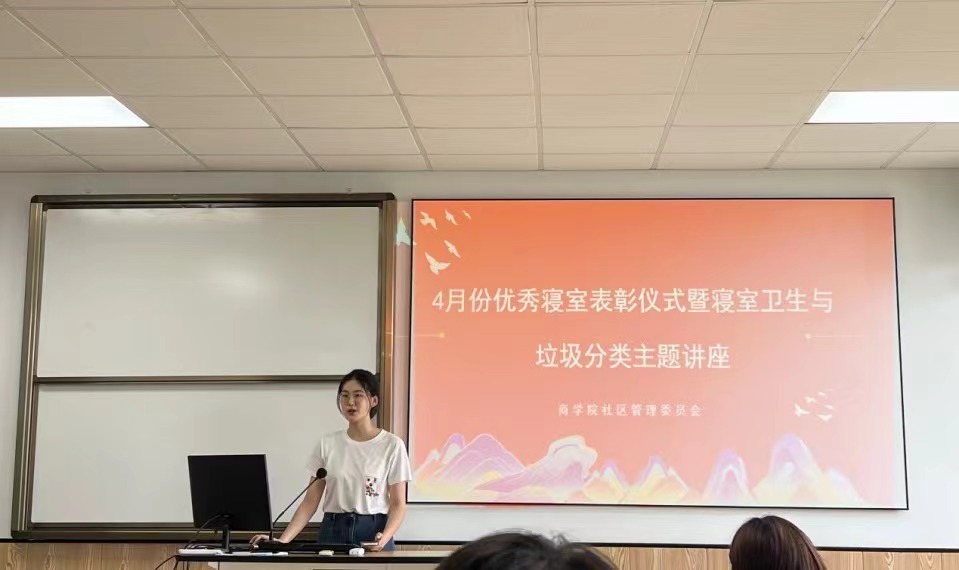 为推进文明寝室建设,激励学生文明习惯养成,5月17日中午,91制片厂 在曹光彪楼314教室举行四月份优秀寝室表彰大会暨寝室卫生与垃圾分类主题讲座,全院各班级生活委员及部分寝室代表参加,学院辅导员麦尔阿巴受邀出席此次活动。